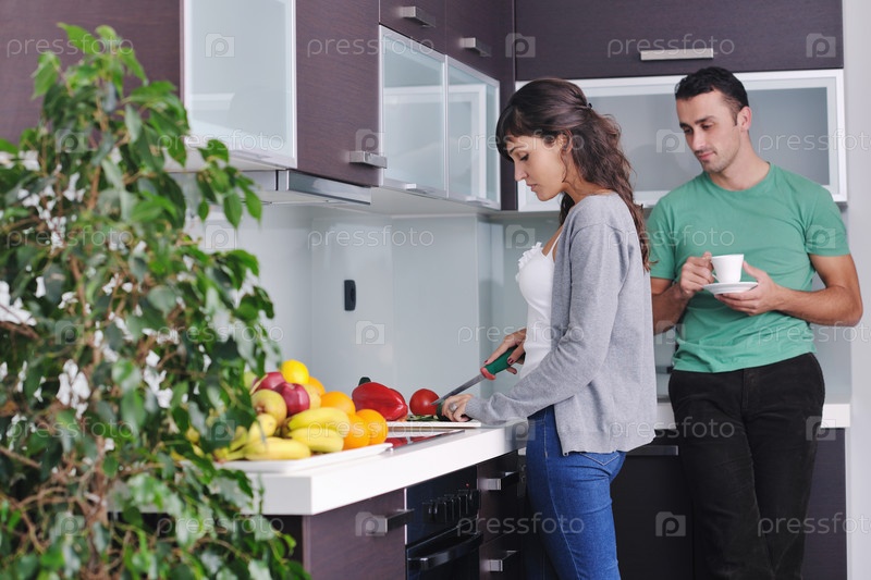 Счастливая молодая пара на кухне