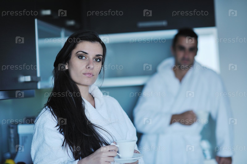 Молодая женщина пьет кофе утром