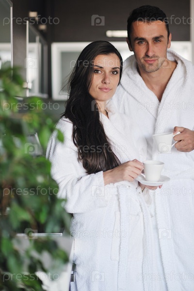 Молодая пара пьет утренний кофе