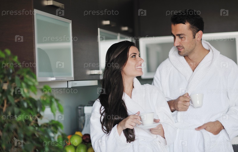 Молодая пара пьет утренний кофе