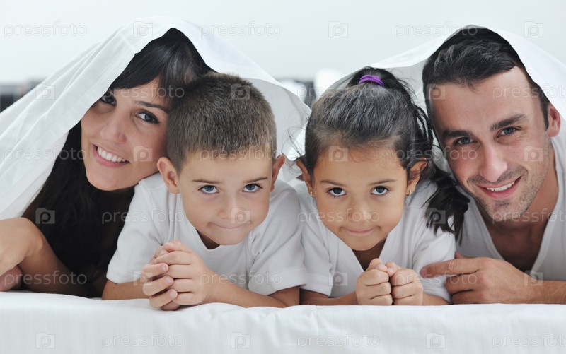 Счастливая семья на кровати