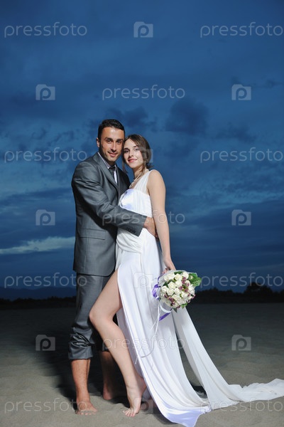 Счастливые молодожены на открытом воздухе