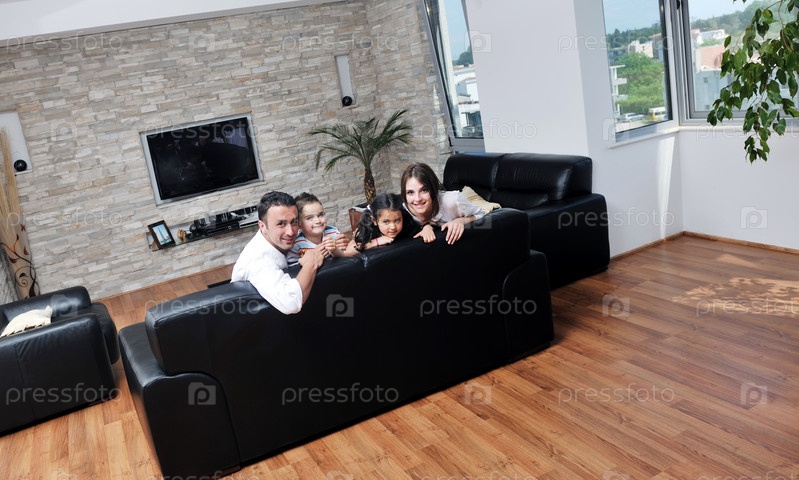 Счастливая молодая семья в домашней обстановке