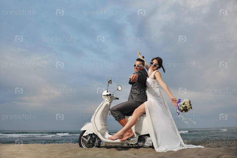 Счастливые молодожены на скутере
