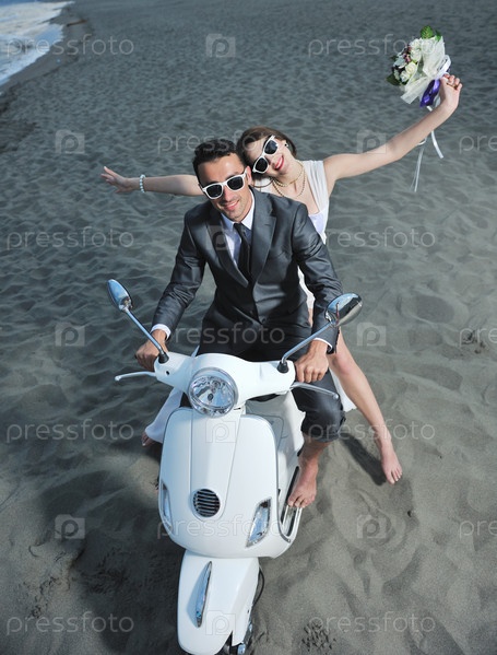 Счастливые молодожены на скутере