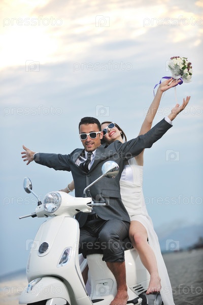 Счастливые молодожены на скутере