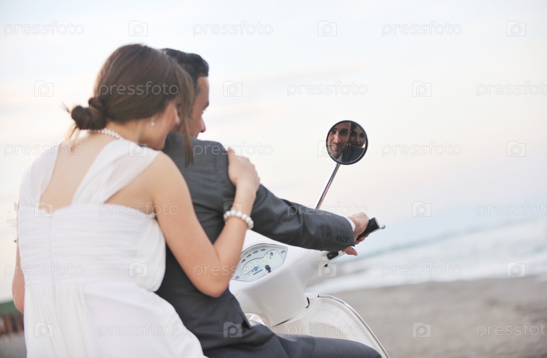 Счастливые молодожены на скутере