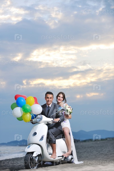 Счастливые молодожены на скутере