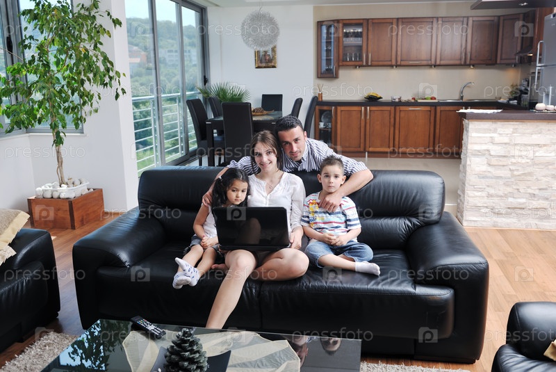 Счастливая молодая семья в домашней обстановке