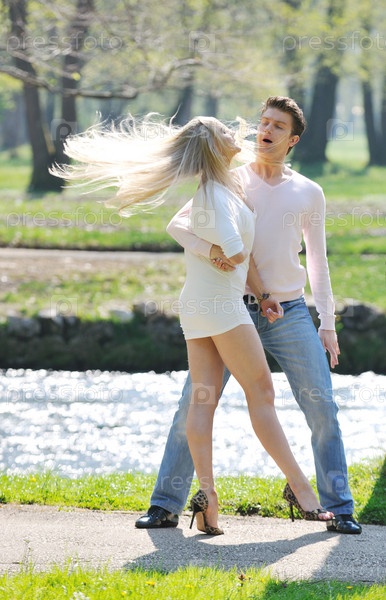 Счастливая молодая пара на открытом воздухе весной