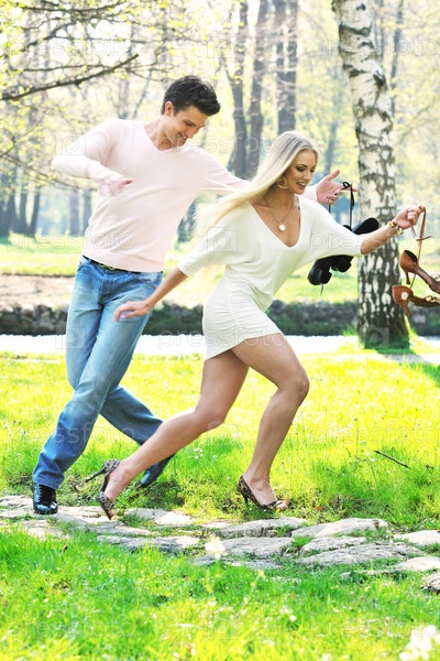 Счастливая молодая пара на открытом воздухе весной
