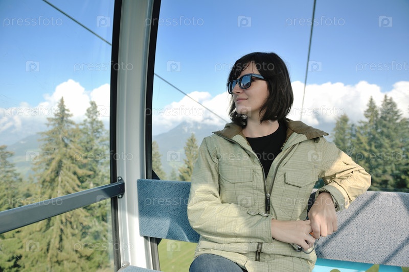 Молодая женщина едет по канатной дороге