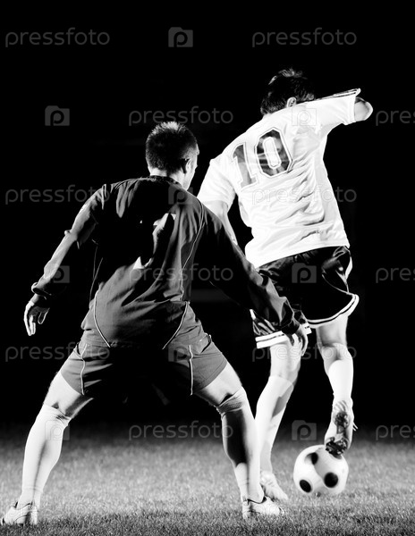 Футбольная игра на стадионе, ночь