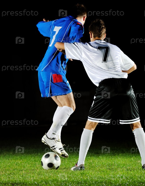 Футбольная игра на стадионе, ночь
