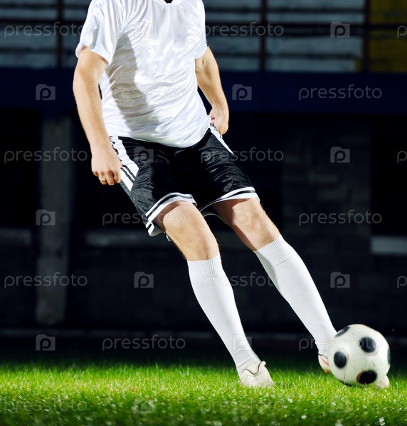 Футболист на стадионе с мячом, ночь