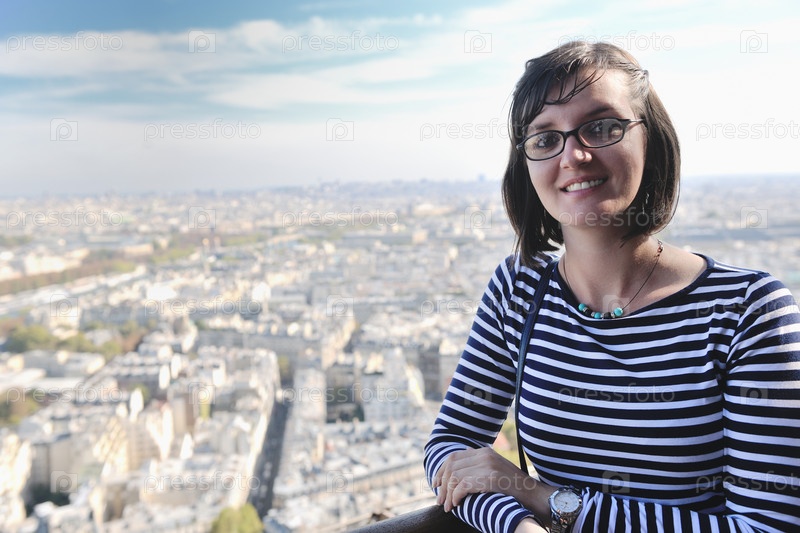 Портрет девушки на фоне Парижа