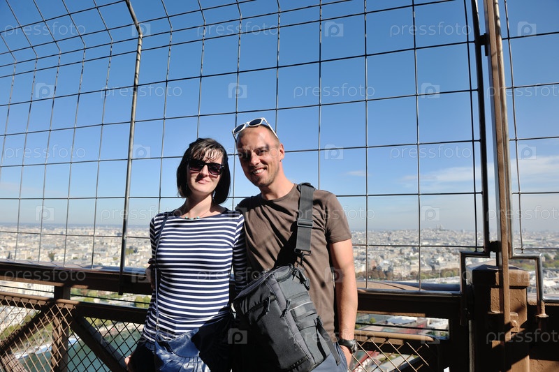 Молодая пара на Эйфелевой башне в Париже