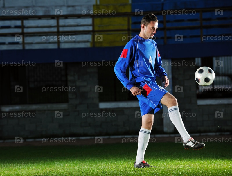 Футболист с мячом на поле