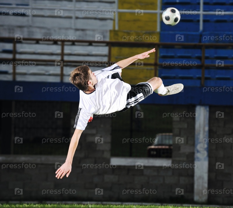 Футболист с мячом на поле