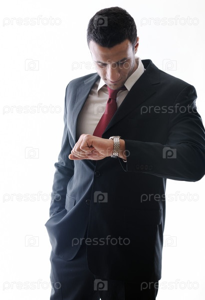 Портрет молодого делового араба, смотрящего на часы