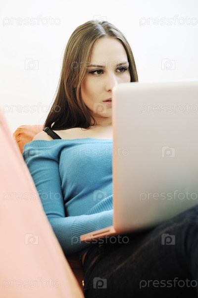 Девушка с ноутбуком на диване