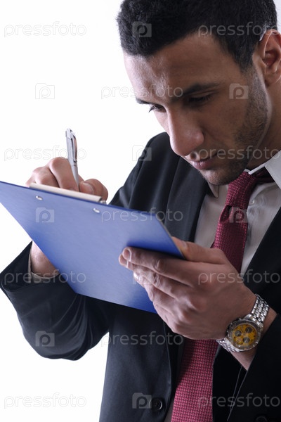 Портрет арабского бизнесмена, делающего пометки в документе