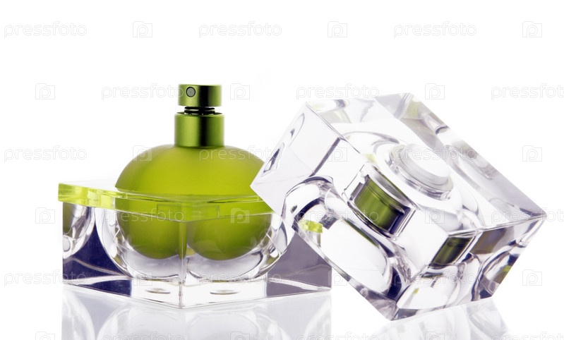 Близкий план бутылки парфюмерии на белом фоне