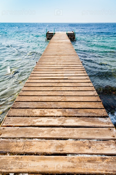 Деревянный пирс на побережье Красного моря в Акабе, Иордания