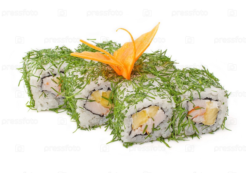 Суши с рыбой и зеленью