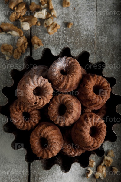 Печенье с орехом и какао на деревянном столе