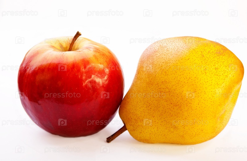 Яблоко и груша на белом фоне