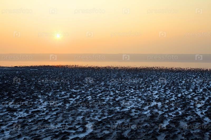 Высохшее соленое озеро на закате