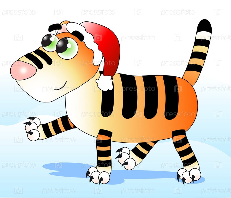 Симпатичный тигр с шляпой Санта-Клауса