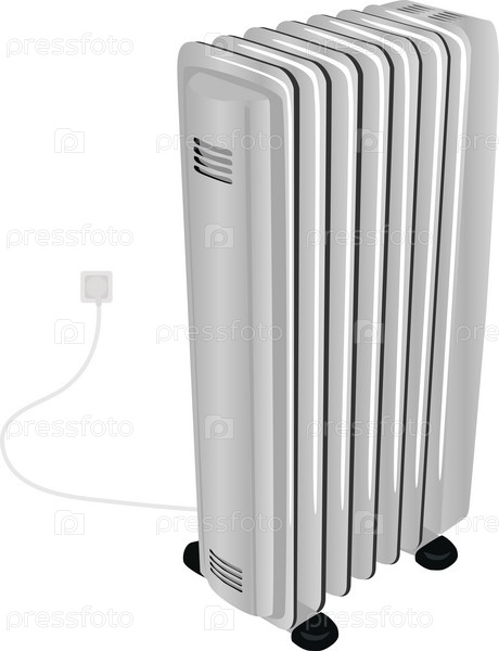 Электрический масляный обогреватель для жилых и служебных помещений на белом фоне