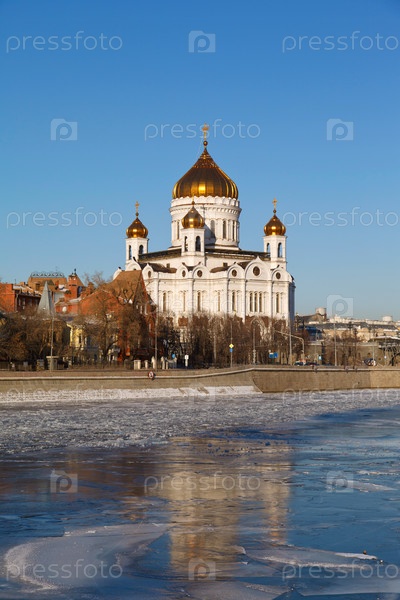 Храм Христа Спасителя в Москве на фоне замороженной реки