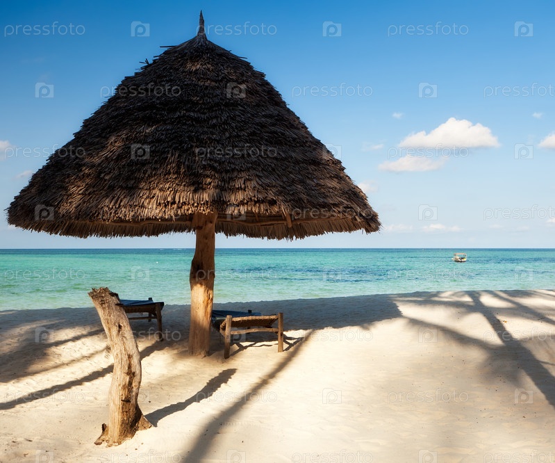 Зонтик на пляже Индийского океана, Занзибар