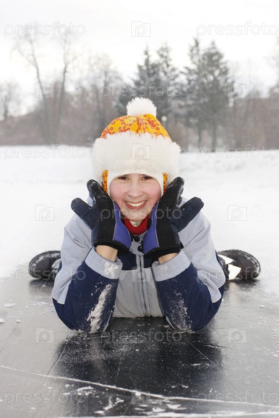 Девушка на льду. холодное зимнее время, январь 2009 года