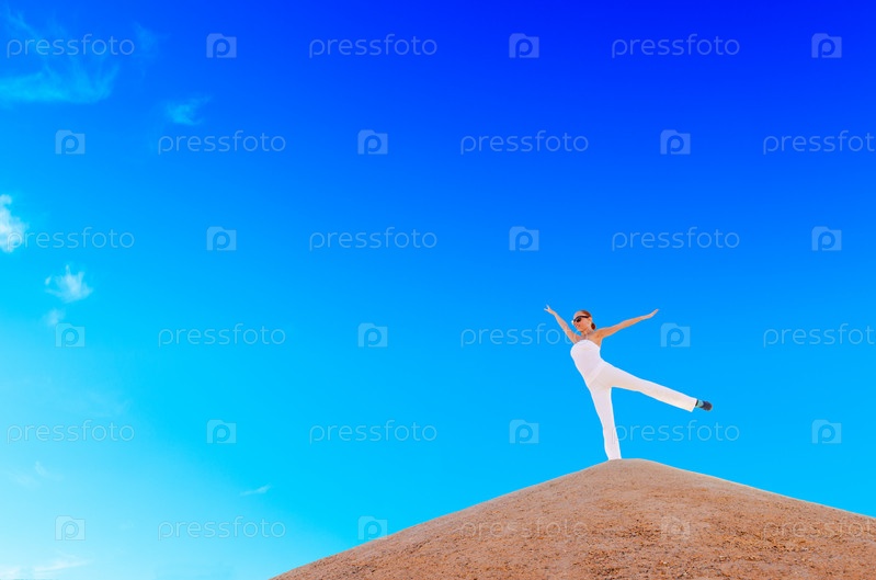 Красивая молодая женщина на вершине горы