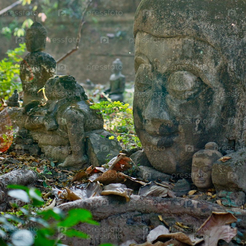Голова каменного Будды в древнем храме в Чиангмае, Таиланд