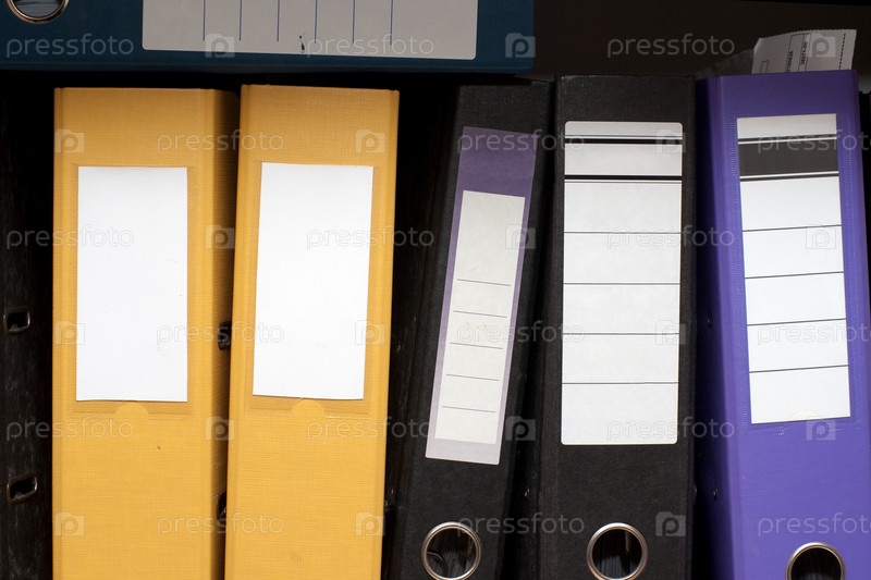 Цветные папки находятся на полке в ряд