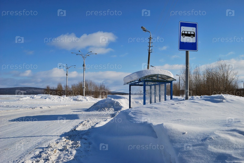 Зимний день снимок автобусной остановки
