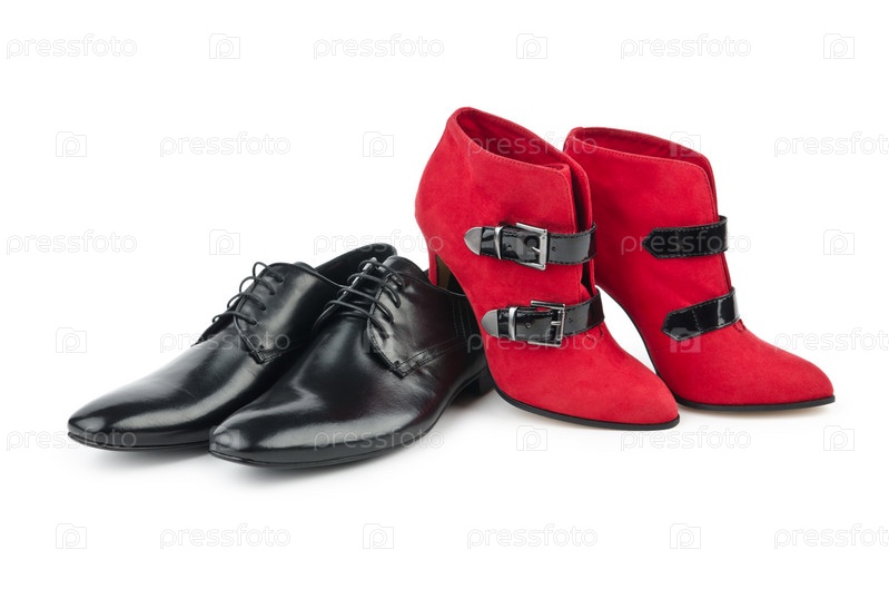 Мужские и женские туфли на белом фоне