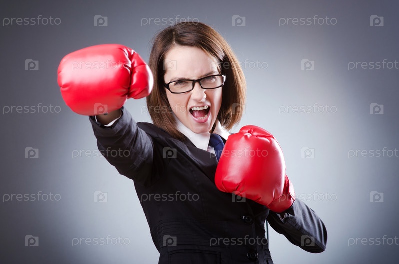 Деловая молодая женщина в боксерских перчатках