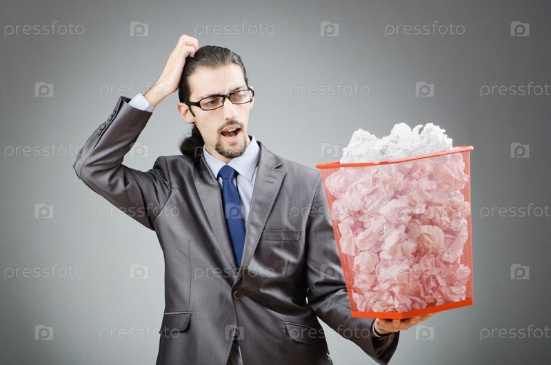 Бизнесмен с корзиной для бумажного мусора