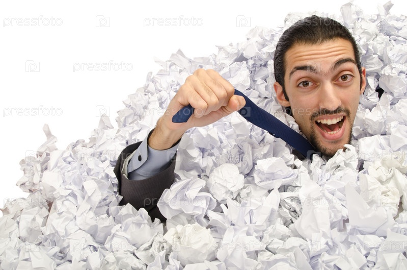 Бизнесмен в бумажном мусоре