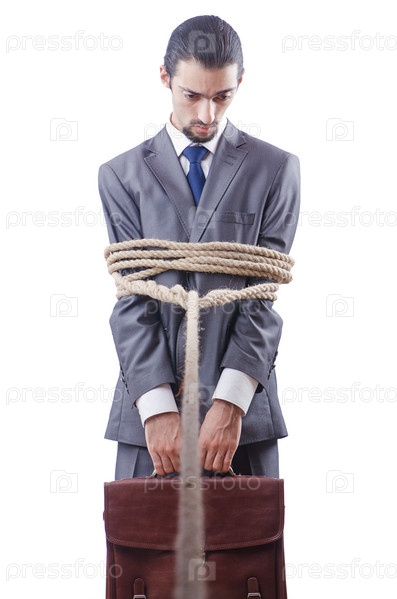 Бизнесмен, связанный веревкой