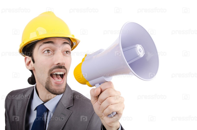 Молодой человек кричит в громкоговоритель