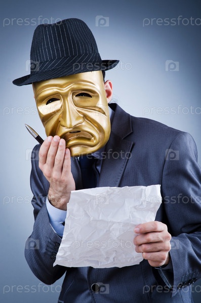 Концепция промышленного шпионажа, предприниматель с маской на лице