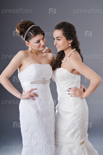 Две красивые невесты в свадебных платьях