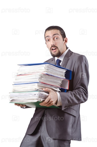 Предприниматель со стопкой папок с документами